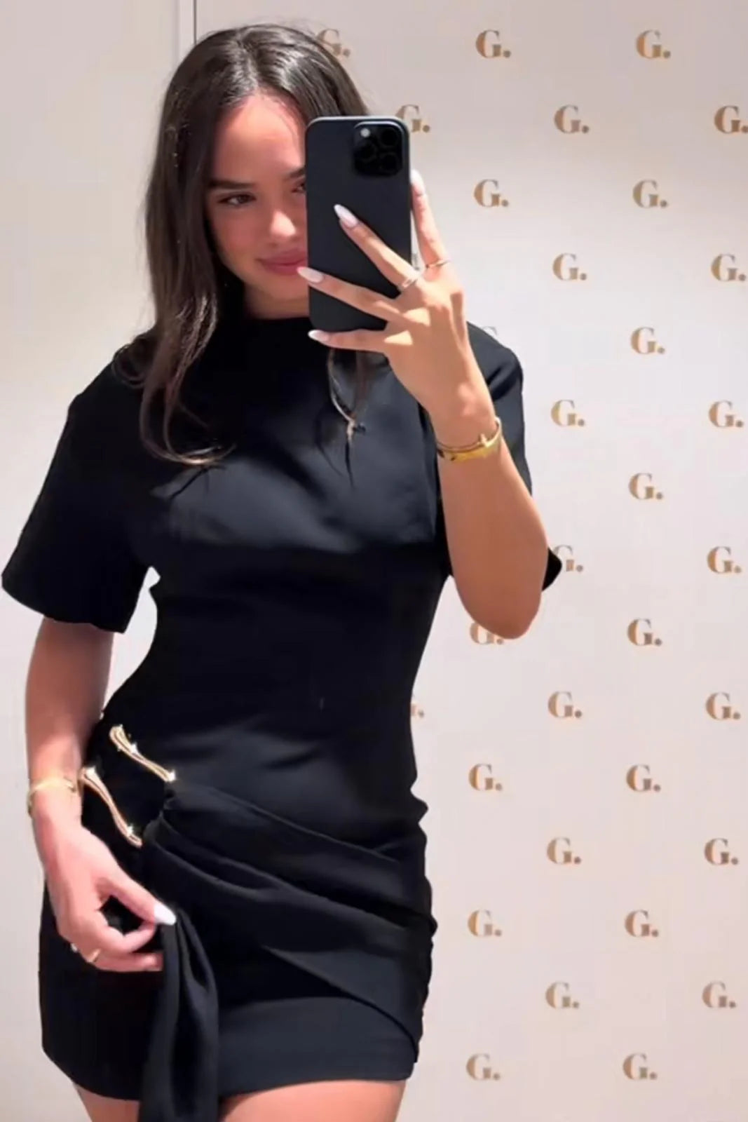 “"The Noir Sculpt Mini Dress hugs in all the right places—it's sleek, bold, and makes me feel amazing."”