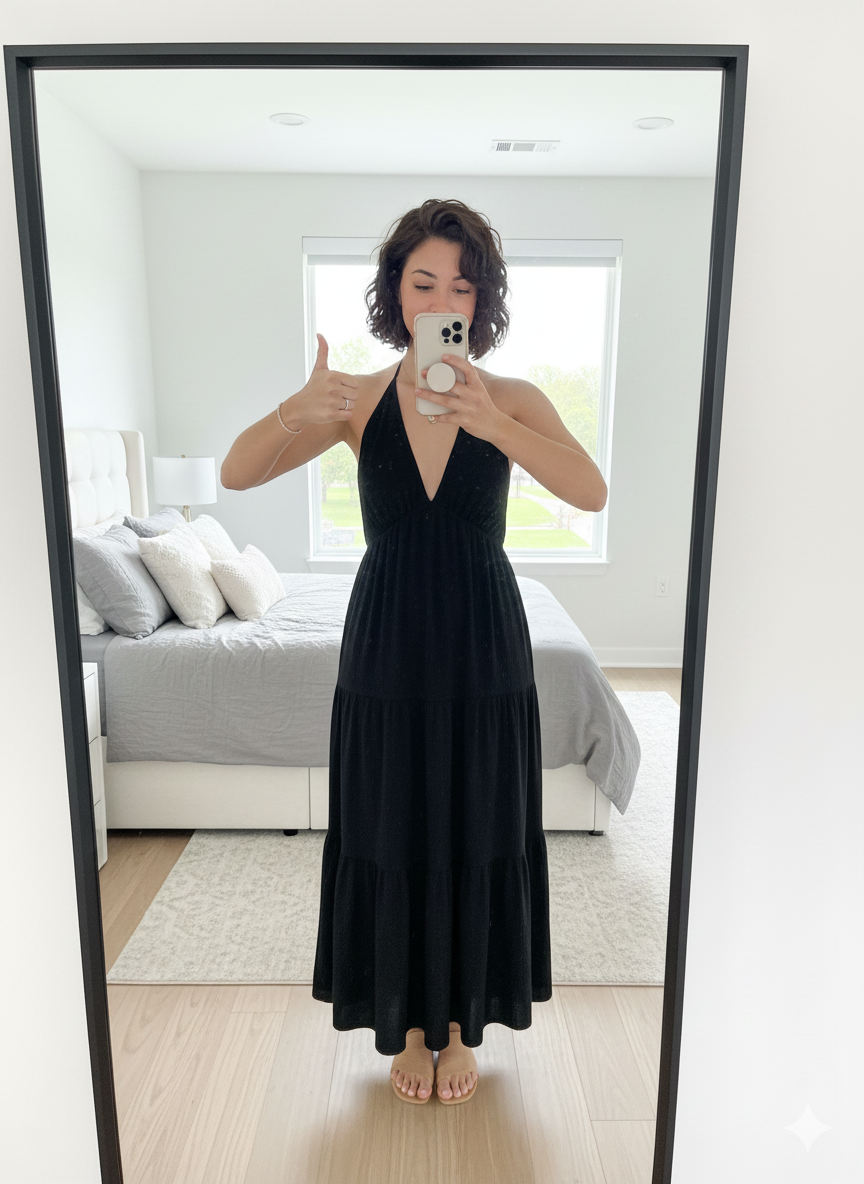 “"The Noir Sculpt Mini Dress hugs in all the right places—it's sleek, bold, and makes me feel amazing."”
