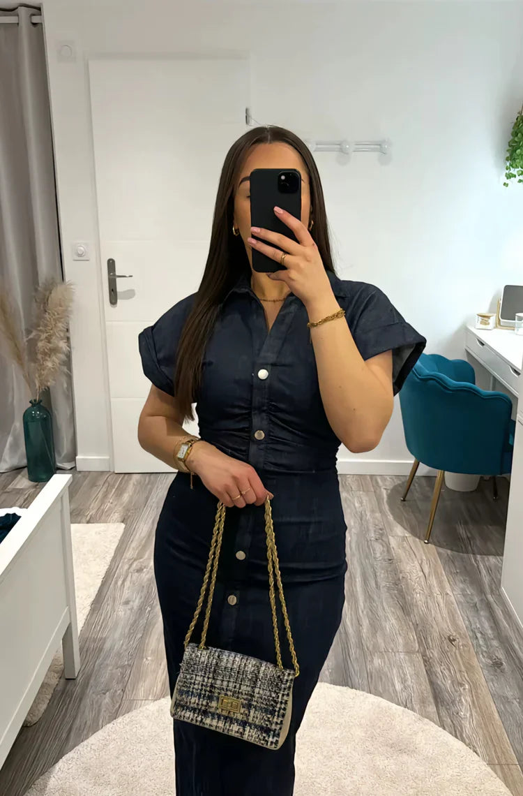 “"The Noir Sculpt Mini Dress hugs in all the right places—it's sleek, bold, and makes me feel amazing."”