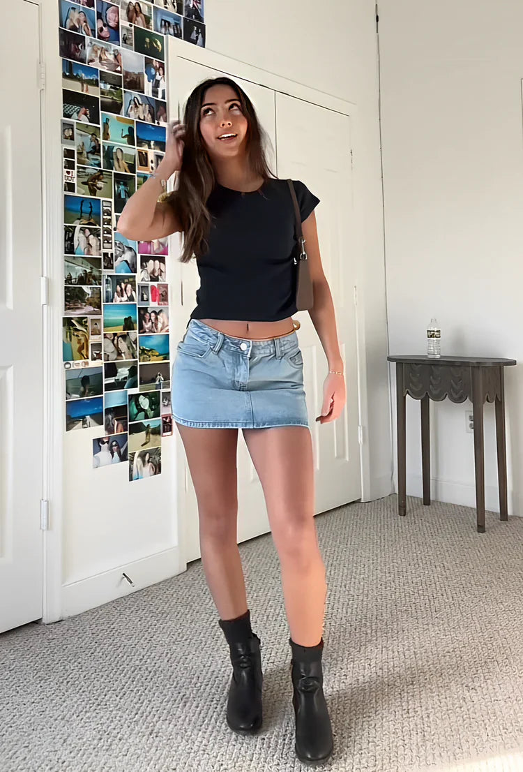 This denim skirt is a total must-have! It fits like a dream and goes with literally everything. I’ve worn it with sneakers, boots, and even heels—it always looks cute. The denim is sturdy but has a little stretch, which makes it really comfy."