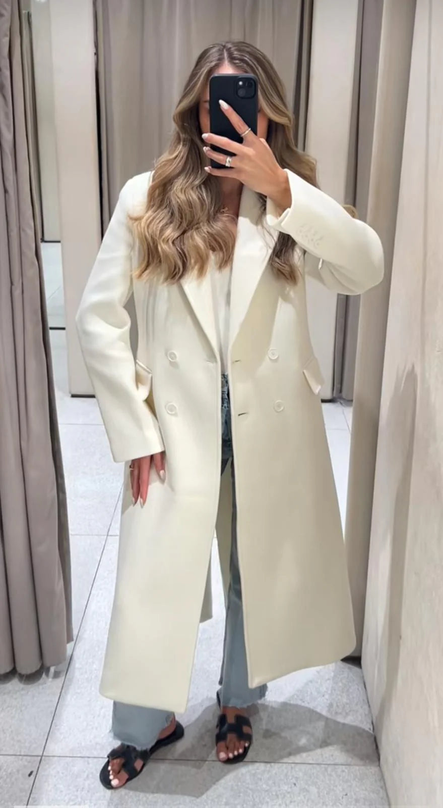 Step into timeless elegance with our long white wool coat — the perfect blend of warmth, grace, and modern minimalism. Crafted from a high-quality wool blend, this full-length coat offers a luxurious feel and exceptional comfort, ideal for colder days. The crisp white color adds a refined, fashion-forward touch that makes any outfit stand out.